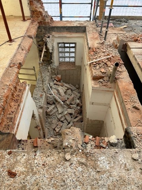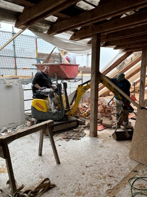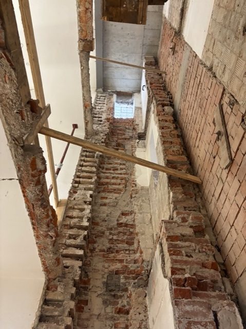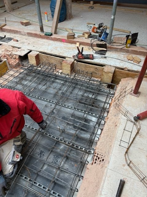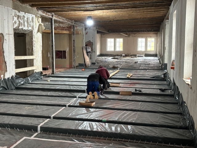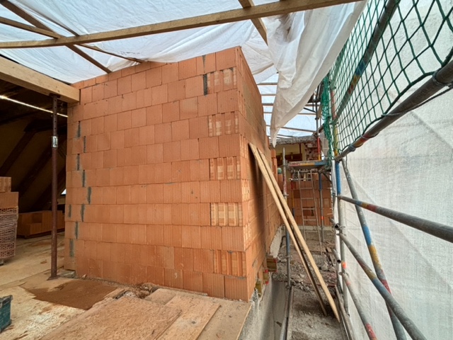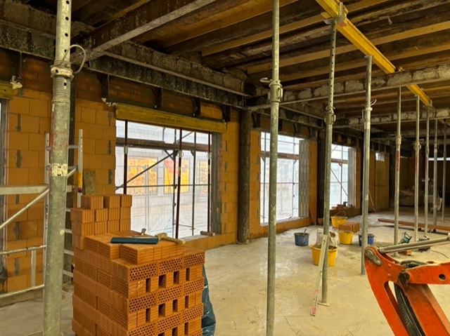 Derzeit werden umfangreiche Baumeisterarbeiten ausgeführt. Dazu gehört unter anderem die Herstellung von rund 1.450 m² Holz-Beton-Verbunddecken mit etwa 22.000 Verbundankern. Im Zuge dessen kommen ca. 250 m³ Ortbeton, rund 9 Tonnen Baustahl sowie etwa 200 Paletten Ziegel für die laufenden Mauerarbeiten zum Einsatz.